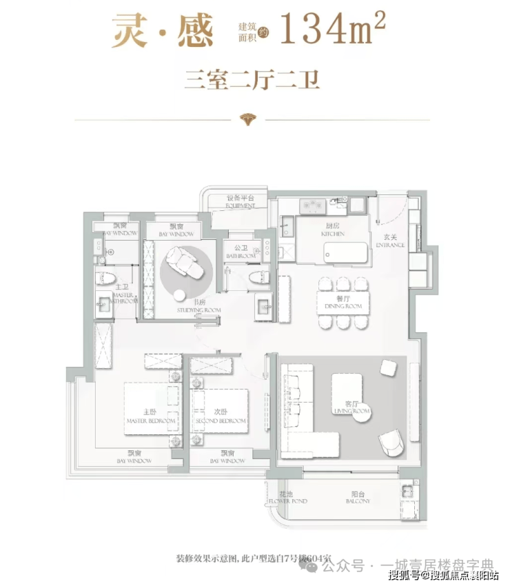 (二)建面约 134㎡ 三房两厅两卫 —— 改善爆款户型,1209 万起