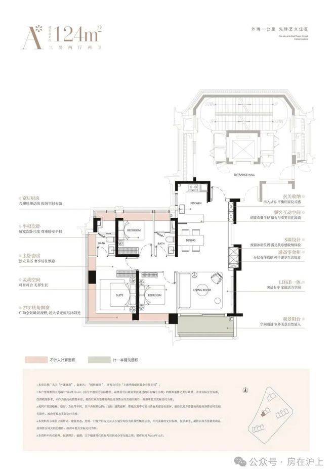 建面约124㎡经典的三房布局,高效满足主流家庭的居住需求,每一房间均设计有观景飘窗,让外滩的天际线成为日常生活的背景。创新的S墙设计与南向次卧“可开可合”的灵活隔断,在有限面积内实现了功能与美感的精妙平衡。