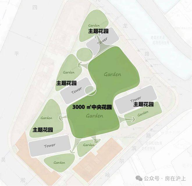 社区景观上,突破市区项目常见的「兵列树阵式」布局,通过建筑楼体的精密偏转,形成罕见的围合式社区形态。