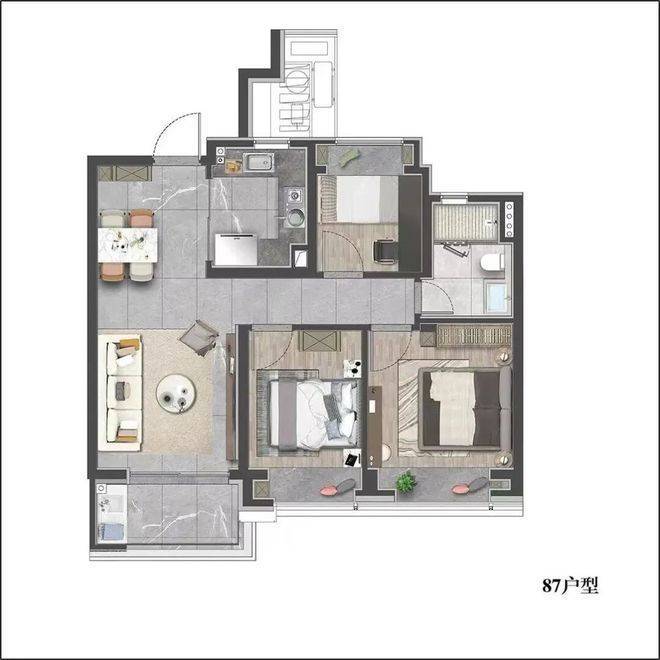 建面约87㎡3房,做到了三开间朝南设计,整个户型几乎没有浪费面积。实现空间节约、居住升级等美好体验。✅中环云悦府售楼处电话:400-833-6309(官方售楼处电话)