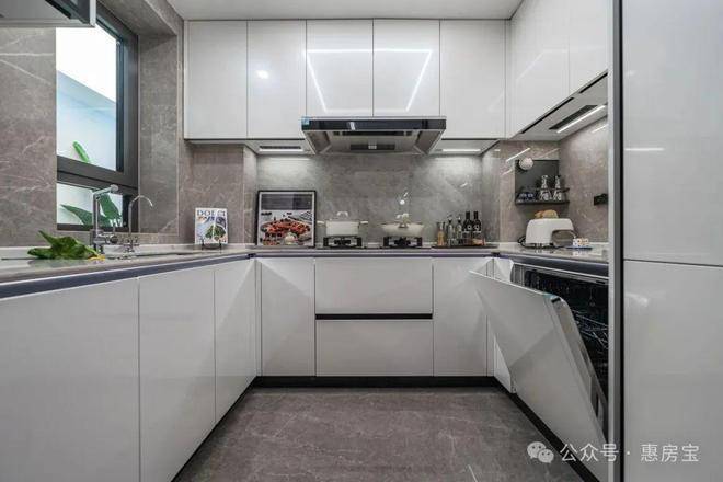 在户型的生活动线设计方面,象屿也极尽巧思,如在厨房采用U型设计动线,让住户一个转身就完成洗、切、配、烧四个步骤,省时省力;同时配备西门子品牌脱排、灶具、洗碗机三件套,以及嵌入式冰箱,方便了居家生活……