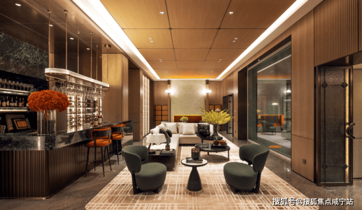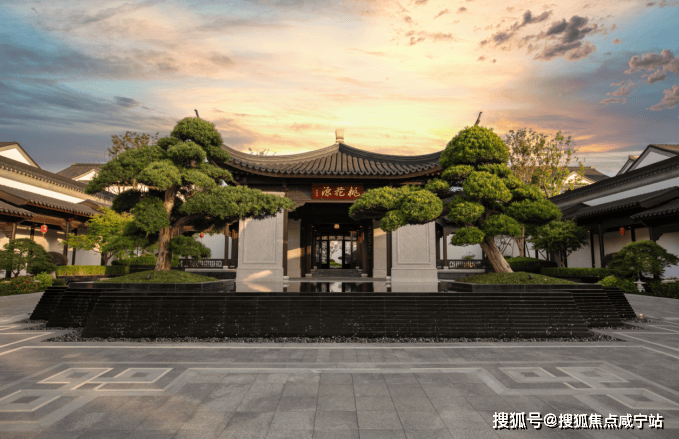 园林建筑融合中式风格与黄花梨木肌理,既承古法方正格局,又拓现代开阔尺度