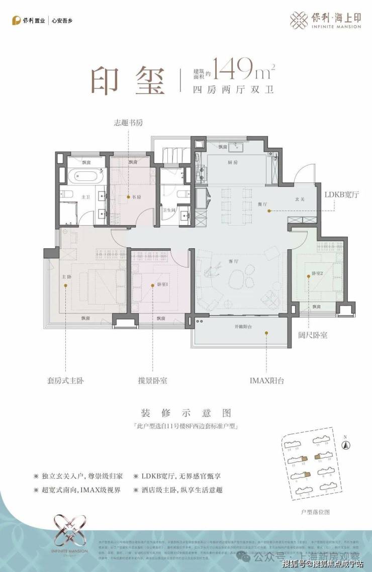 约149㎡楼王户型:双套房设计,270°景观视野,定义改善天花板。