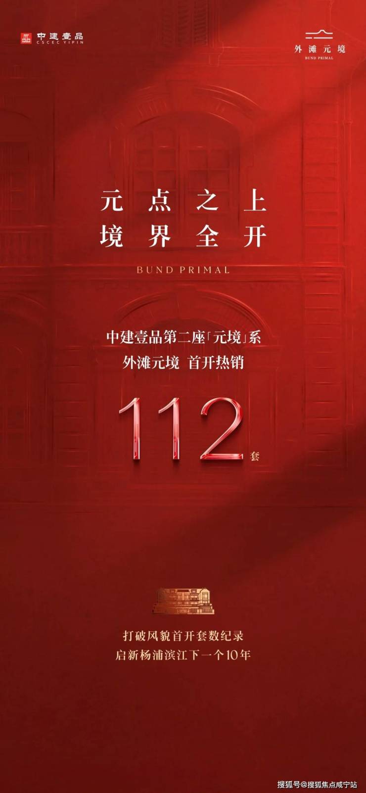 继北京海宸元境首开大捷后,1月22日,中建壹品第二座“元境”系作品——外滩元境正式开盘,首开热销112套,去化率突破82%,一举拿下上海风貌产品首开去化套数纪录,这也是中建壹品继浦江之星、华忻坊、外滩源著后,又一个杨浦滨江封面作品。