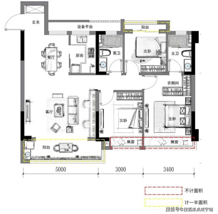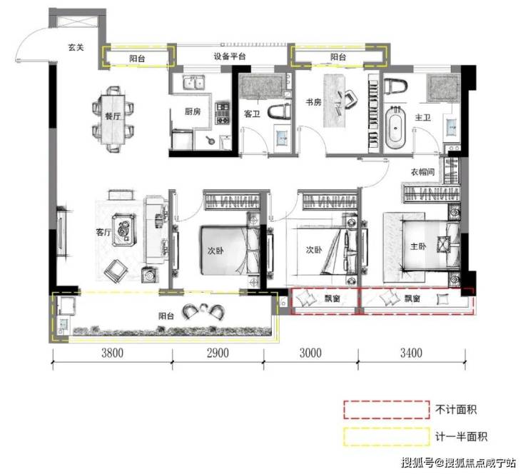 更显特别的是,他还在百平级别的户型内,带来了创新的「北侧景观阳台」设计。