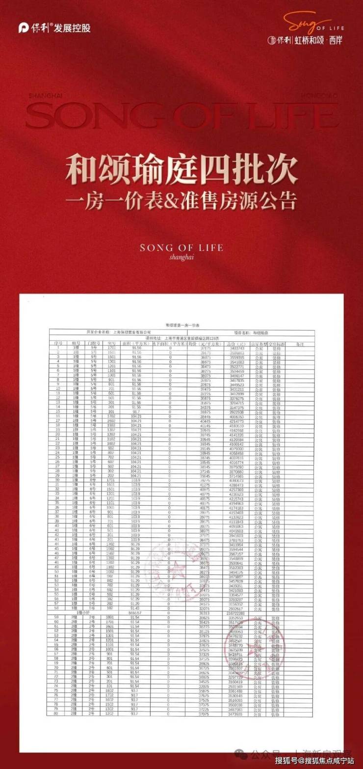 【保利虹桥和颂】四期加推3栋(1#2#6#)151套建面约91-134m²3-4房;均价38289元/㎡!认购金20万!认购时间:12月14日-12月18日;主力总价300-500万级,错过不再!售楼处线上火热预约中!