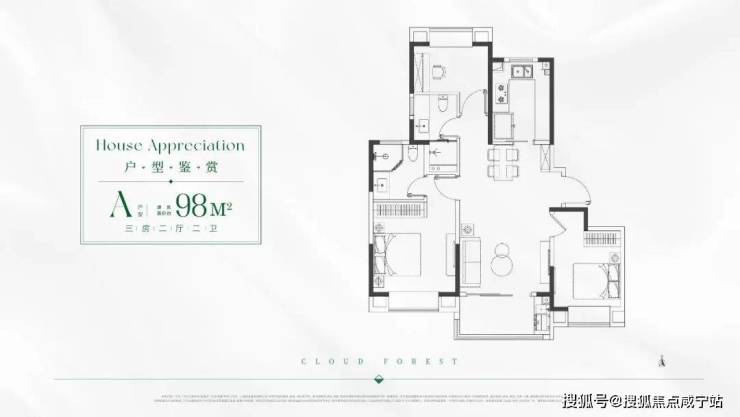 约98㎡3房2卫的爆款飞机户型,南北通透+三开间朝南,整体室内的采光、通风都做到了极致。