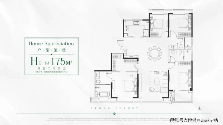 建面约175㎡4房3卫,几乎是上海改善的终点户型。