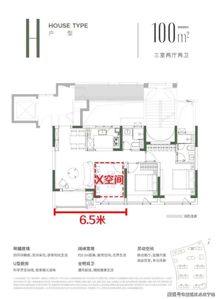 H户型是难得一见的四开间朝南、全明户型层高3.2米,阳光充沛,整盘仅15套!公共区域电梯门侧对单元门,隐私性更强!动静分离,生活起居互不打扰;延续竖厅餐厅/客厅分区功能明确;客厅相邻卧室的墙体未来二次装修可变X空间,打通可以拥有面宽约6.5米的超大尺度横厅;主卧套间进门处未来可做整面储物柜,收纳空间Max!非常适合年轻家庭居住,尺度感也是足够的!