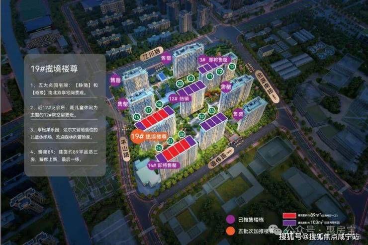 户型设计:主打89㎡及103㎡三房,均实现三开间朝南与客餐一体化布局。103㎡户型配备270°环幕飘窗,最大化引入江景与采光。