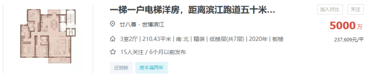 以黄浦滨江廿八尊为例,2020年交房纯洋房社区,仅1套挂牌,单价高达23.76万/㎡!