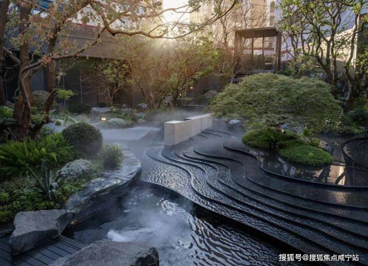 水是景观的灵魂,金茂璞元摒弃人工池塘的刻板设计,让水系循地形自然流转,复刻溪谷的灵动曲线。