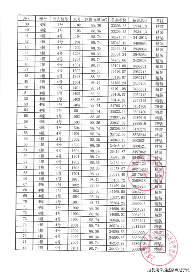 附一房一价表: