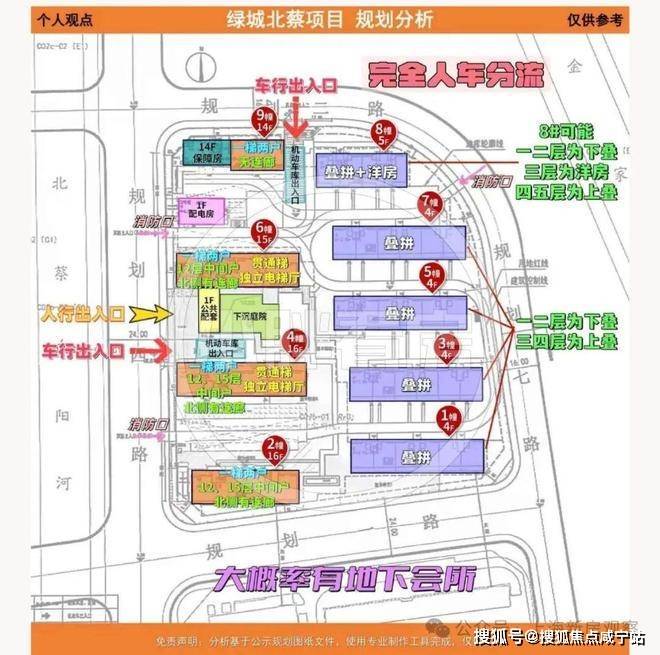 另外从绿城上海逸庐设计方案也可以看出,项目地面无车位,全人车分流,机动车出入口分别位于西侧规划四路、以及北侧规划二路;