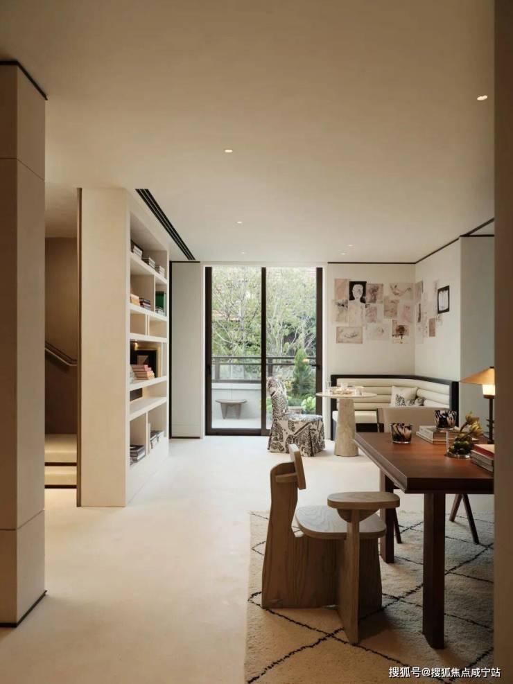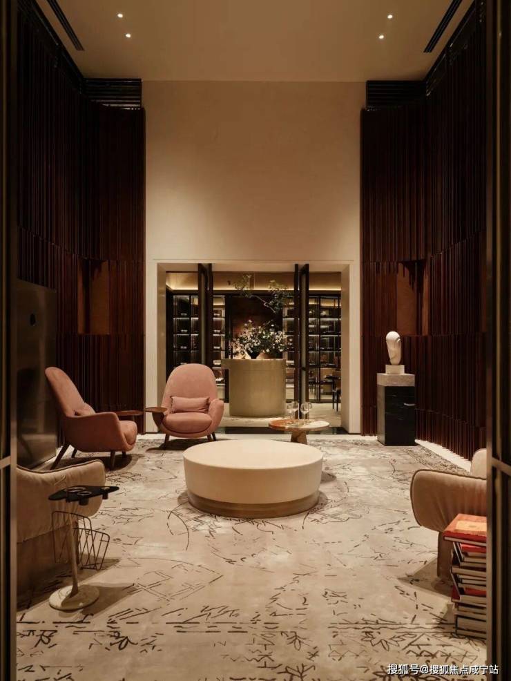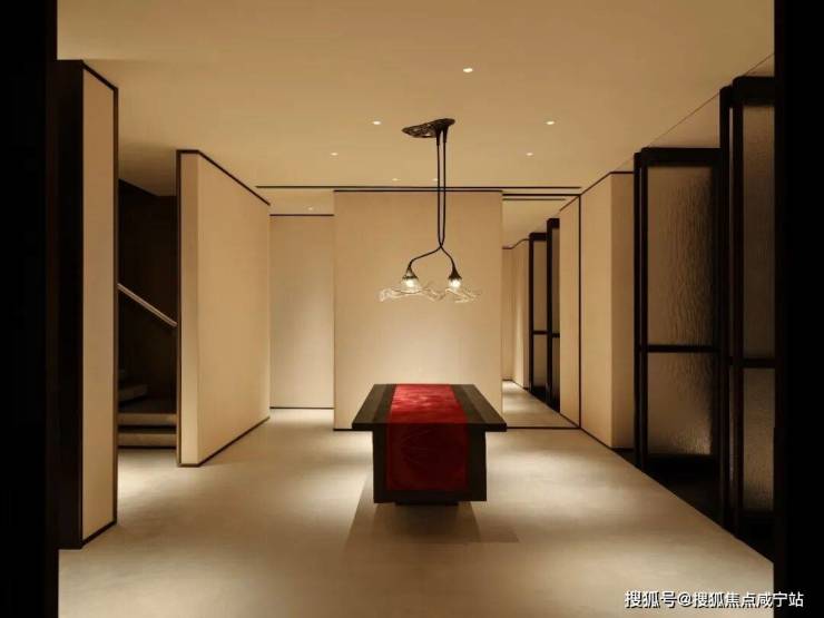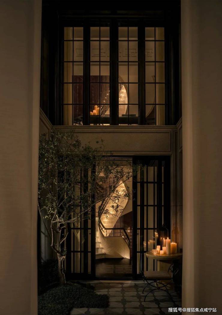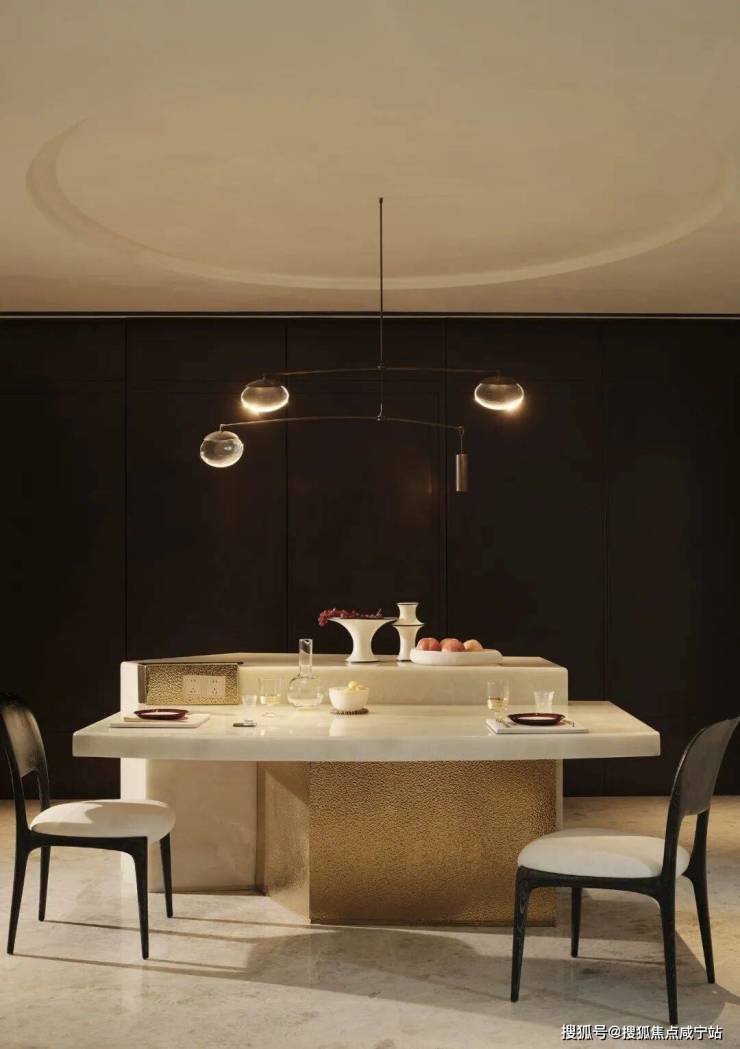 餐厅与水景庭院隔窗相望,羊皮纸拼就而成的屏风成为视觉焦点,内凹式金色圆顶,既赋予空间安定感,又营造出轻盈视效。在这样一座联结历史与当代的精神居所中,追溯东方视角,将上海百年风华凝练于启程转合之间,也昭示着生活的无限可能。
