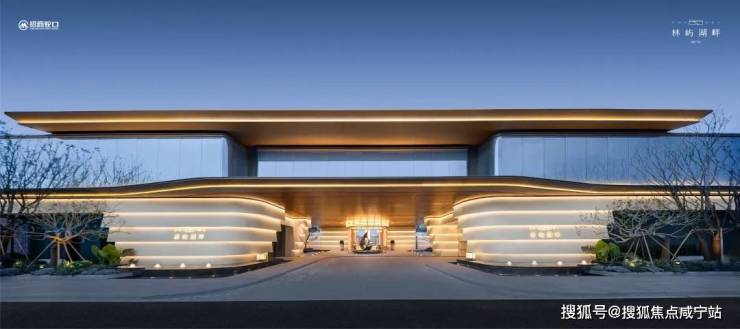 契合远香湖地缘要素,招商·林屿湖畔的外立面以“游艇”为元素,底部石材,弧形铝板结合大面积玻璃幕墙,创造出波光潋滟的视觉效果。香槟色金属光泽与浅米色石材交织,在远香湖的映衬下,呈现出如水波荡漾的灵动效果。