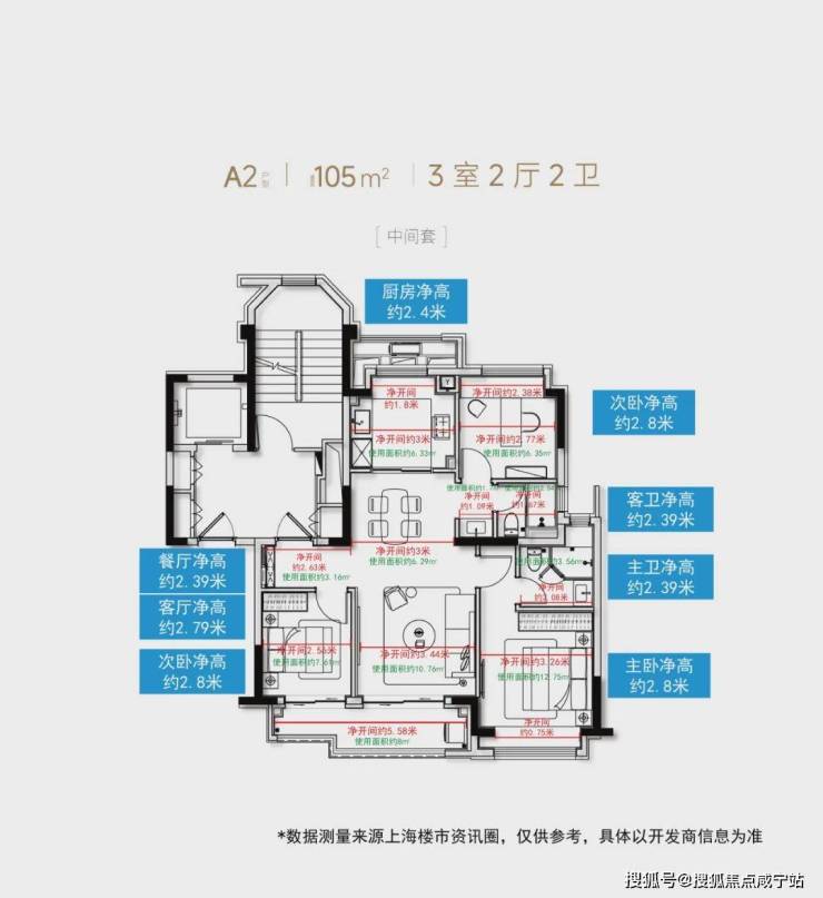仲公子在建面约105㎡实体楼栋交付样板间实测了面积,实体户型尺寸看上图。