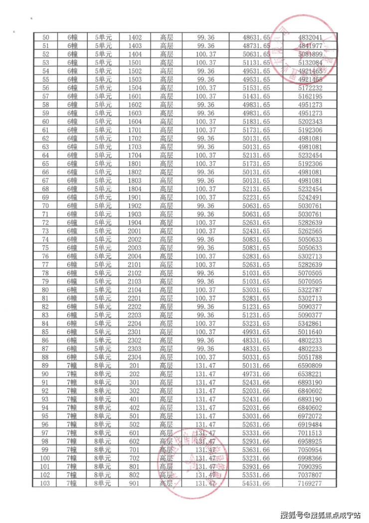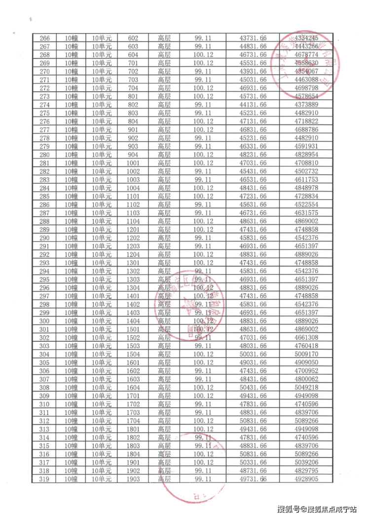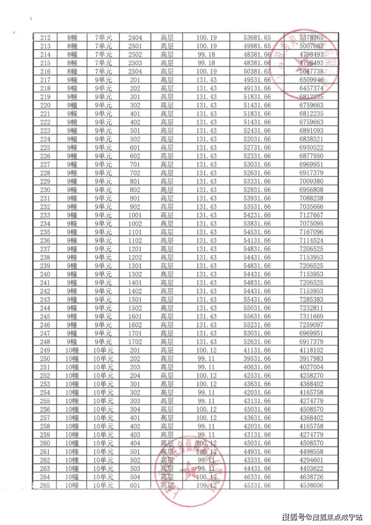 完整一房一价表如下: