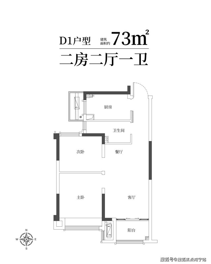 建筑面积约73㎡舒适两房一卫,年轻家庭的向往