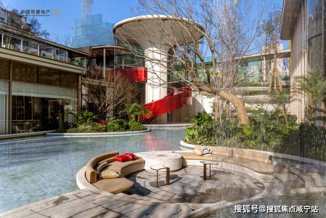 如果将这里理解成“有一个漂亮的水景”,那可能错过了它迷人的部分。它真正在做的事,是把整个社区变成一个立体悬浮的岛屿——你可以在水边发呆,也可以转身走进会所游泳;可以在瀑布声里阅读,也可以拾阶而上与光影相遇。庭院、会所、书吧、旋梯,彼此看见,相互连通,像一座精心设计的立体迷宫,而你每一次穿行其中,都会发现新的惊喜。