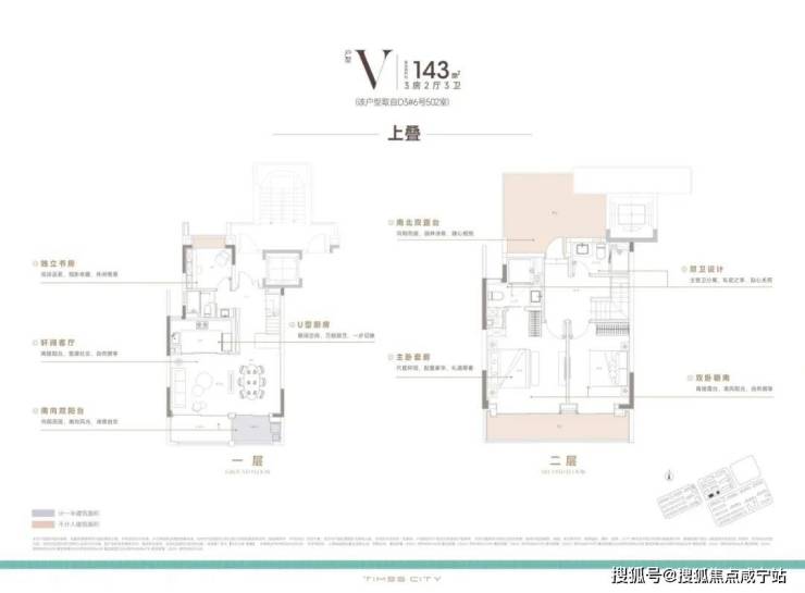 一般上叠只有一个北向露台+一个南向阳台,但时代之城雲墅却有南北双露台+南向双阳台。
