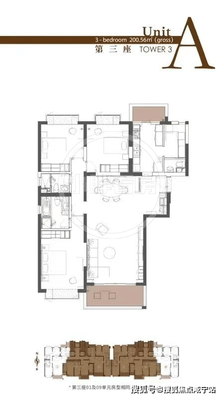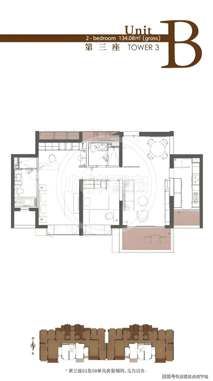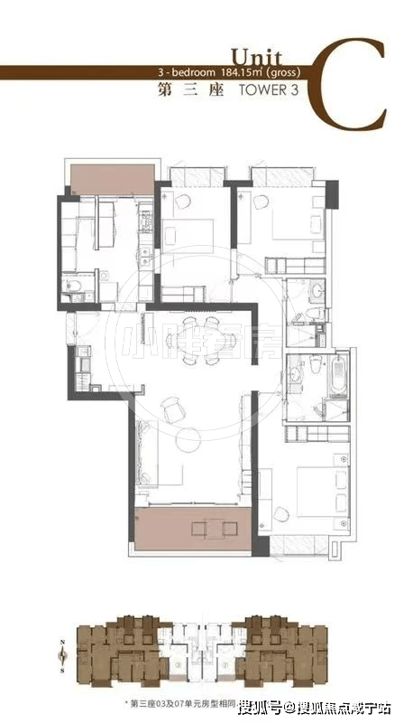 3号楼户型:134㎡2房,184㎡/200㎡3房;