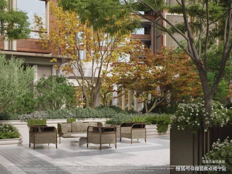 户外设计处处藏着“死磕”:原5栋规划优化为4栋围合式布局,通过偏转实现“楼栋平权”。