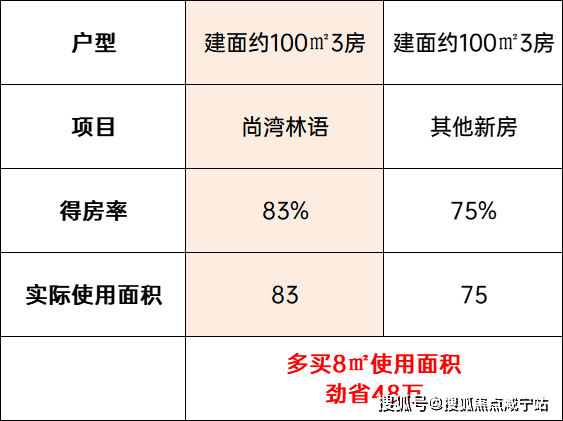 按照同样套内使用面积来算,尚湾林语可以直接节省约48万,极具性价比优势。