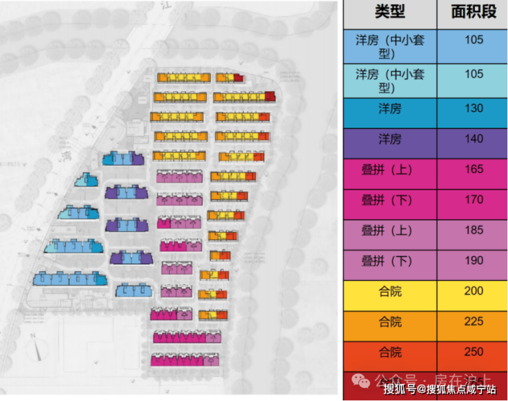 地块容积率1.1,用地面积57099.23㎡,计容建筑面积62809.15㎡,建筑限高20米,规划为低密洋房+别墅社区,西高东低,拟建9栋6层洋房、9栋4层叠加、18栋3层联排,规划总户数438户。