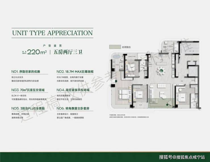 除了阳台外,项目户型设计还有很多出彩的地方,主力建面约170-200-220-240-270方,下面我们结合户型分析一起来看: