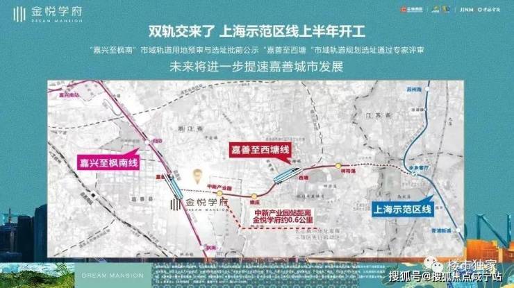 嘉善至西塘线:已经进入工可研究阶段,途径嘉善站、中新产业园、西塘、祥符荡,进入水乡客厅与上海示范区线换乘,最终抵达虹桥枢纽!金悦学府就位于中心产业园站(规划)约600米位置!