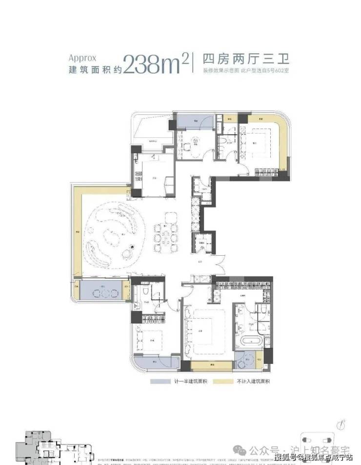 建面约238㎡户型均价约17.3万/㎡,建面约275㎡户型的均价约18.2万/㎡,比起前面衡复徐滨的次新房动辄22万、24万/㎡的挂牌价,倒挂不要太明显,安全垫不言而喻!