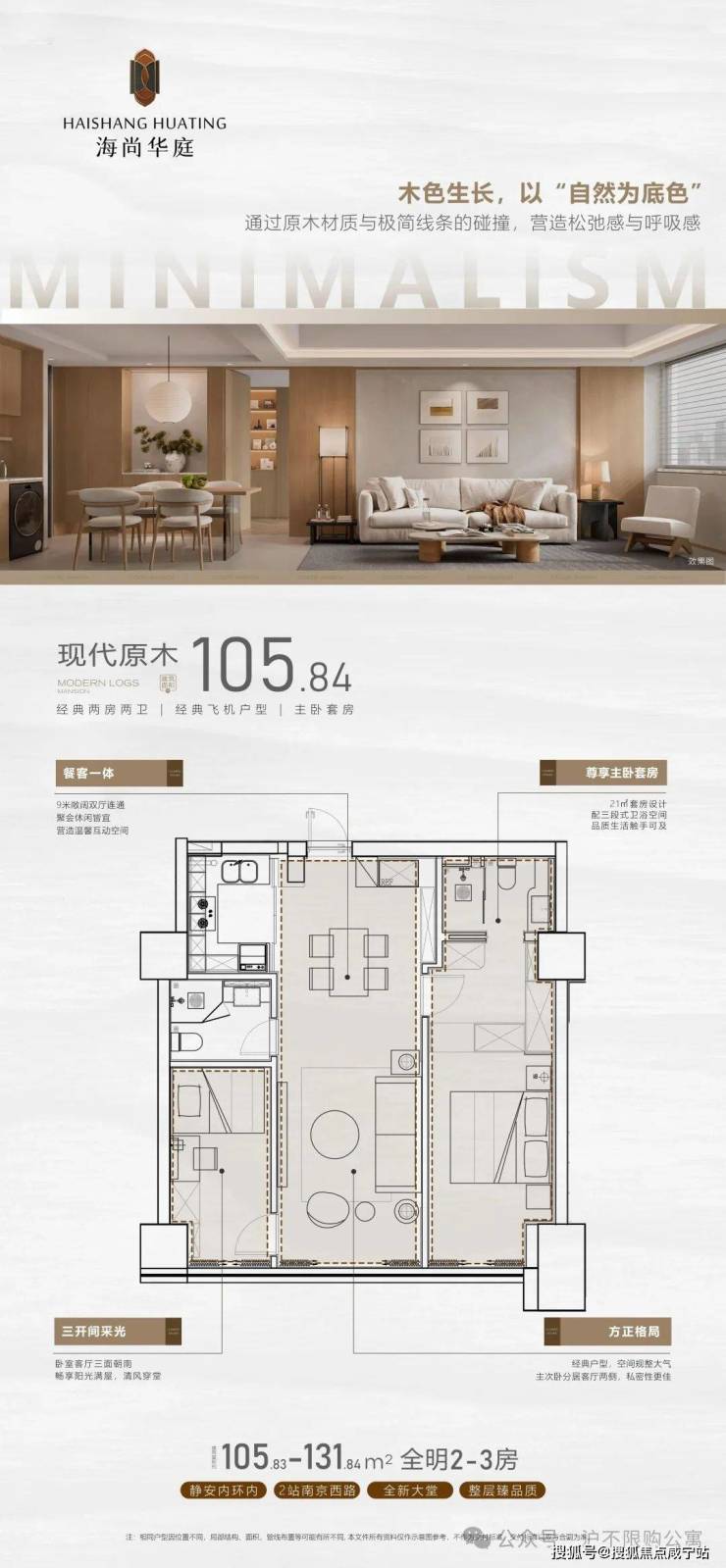 面积105-131平 总价450万起(免3年物业水电)