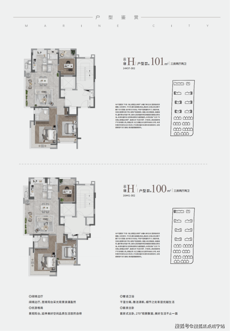 H户型:把“江景+中轴+墅区”这三重景观资源一网打尽!