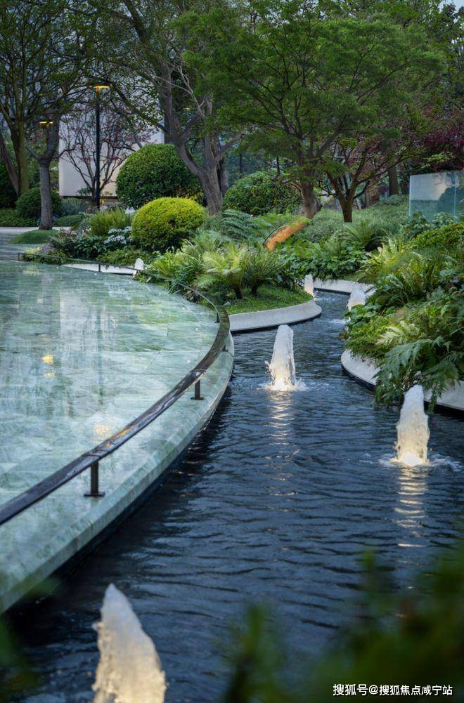 “一帘水幕连天地,半园自然半园家”。下沉庭院的水境森林以无界水池环绕,立体水幕将公园与会所、下沉庭院串联,水声隔绝了外界喧嚣。你在这里散步、静坐、会友,不会有外人打扰。