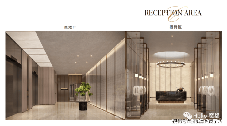 这份体验从电梯厅开始,地面采用奢石拼花,虚实结合的造景将归家仪式感发挥到极致。