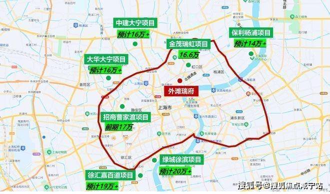 今年六批次土拍,绿城竞得北外滩新宅地,溢价率超过46%,未来售价预计突破20万元,它的位置就在「外滩瑞府」东侧约1KM。