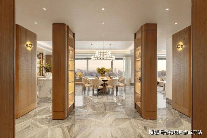豪宅中,会所+泳池已成为市场标配,但是中兴傲舍却将之与艺术融合,把艺术变成了生活的一部分。14.5米超高挑空的归家大堂,搭配三大园景礼序和七重风雨连廊,从进门就仪式感爆棚。