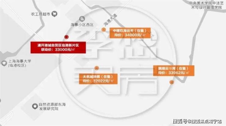 中建玖海云天最近一批次入市的科宸云筑推出了315套,认购率不错,达到了约97%,已于10月28日开盘,但未触发积分。同月开盘的还有旁边的鹏瑞云璟湾,目前仍有不少余量,均价33962元/㎡。去年开盘的大名城映晖,网签率约98%,目前仅剩少量在售,均价32022元/㎡。附近还有2021年3批次土地浦开港城自贸区临港新片区项目,联动价33000元/㎡。