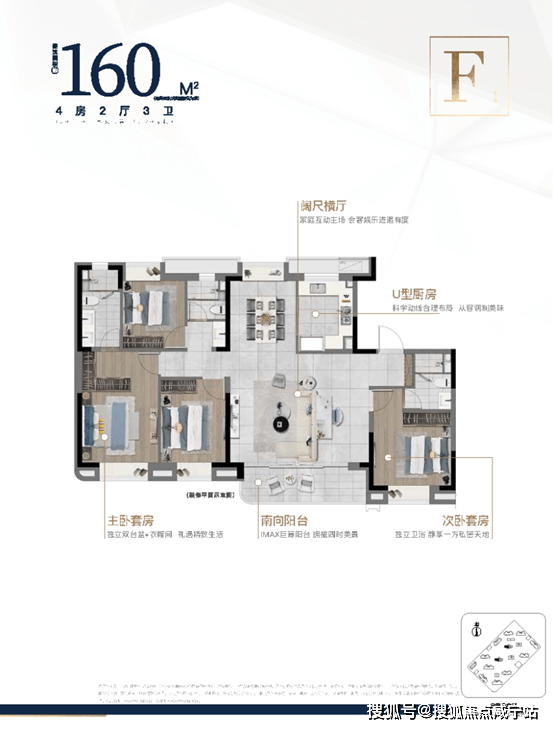 建面约160㎡4房2厅3卫,四开间朝南,阔尺横厅。餐客厅相连,衔接南向阳台,采光、景观俱佳。全卧飘窗,主次卧套房设计,营造私密空间。U型厨房,动线流畅。