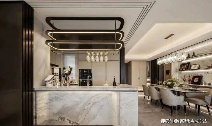 为一块奢石弧形工艺,投入翻倍的成本!整屋坚持用一种昂贵的木饰面贯通始终,从而实现整体艺术风格的统一!