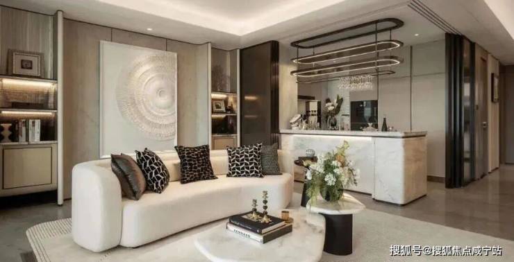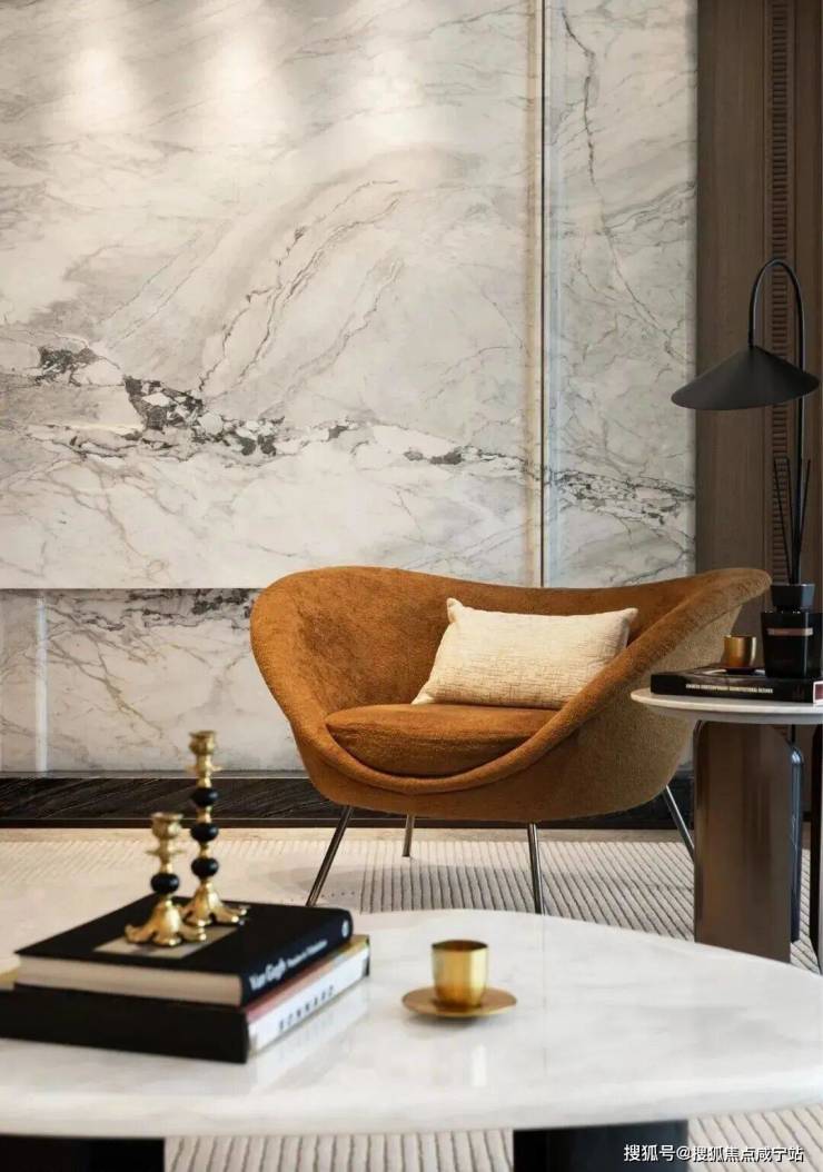 客厅背景墙的“烟雨江南”天然大理石,不同于传统平面背景墙,通过弧度及立体的造型处理,并镶嵌不锈钢材质!对于金茂而言,比奢石昂贵的,是让奢石真正与空间气场融为一体!