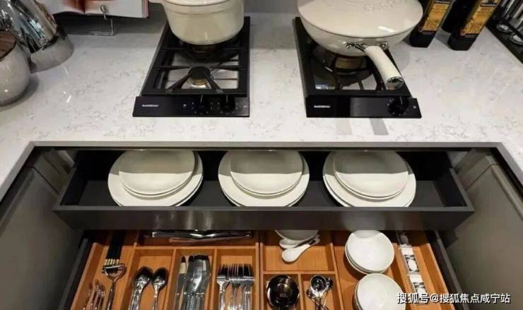 为使厨房成为「真正幸福之地」,璞元在各个细微之处倾注关怀,从地柜拉篮系统,到上柜系统,再到抽屉分格系统,浅抽与深抽搭配,让整个厨房空间,既百变,又充满秩序!