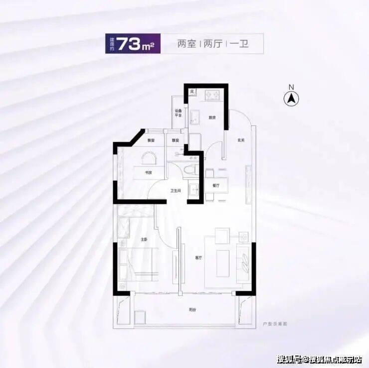 建面约73m²2房2厅1卫