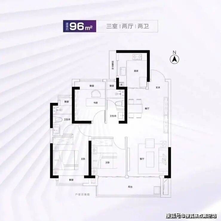 建面约96m²3房2厅2卫