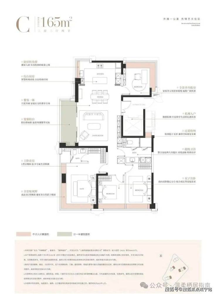 因此,外滩瑞府在建面约165㎡户型中创新推出三四房灵活定制体系。