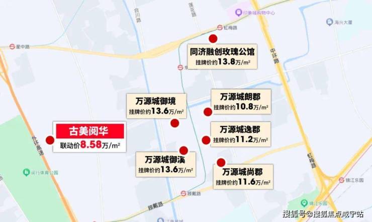 古美标杆万源城,品相好点的房源起步约11万/㎡。相比之下,古美阅华有房龄优势和周边价值预期,约8.58万/㎡联动价性价比颇高。