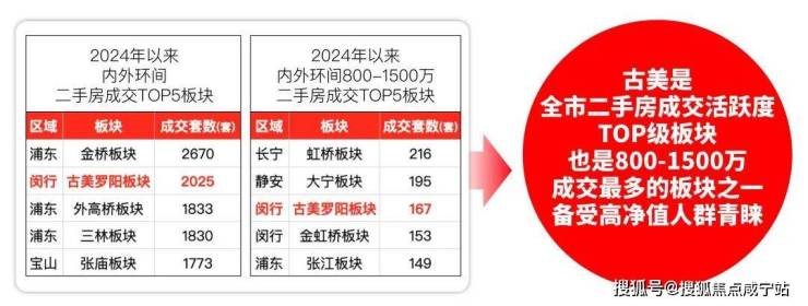 据小胖君统计,古美是上海2024年以来内外环间二手房网签成交最活跃的板块之一,也是800-1500万成交量TOP3板块。