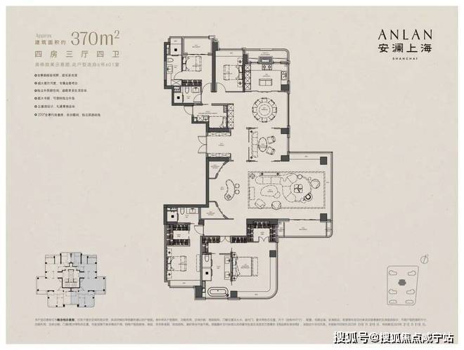 以下为建面约370㎡户型过程稿亮点: