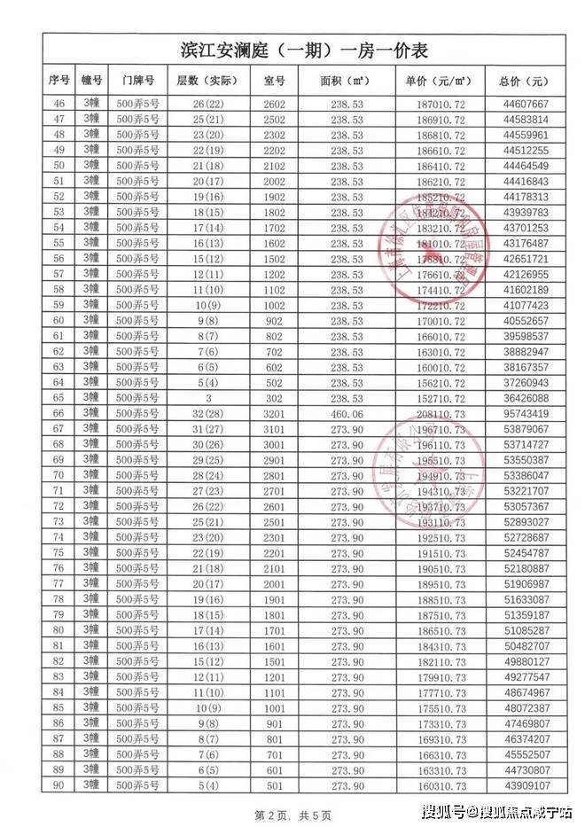 【安澜上海】一房一价表: